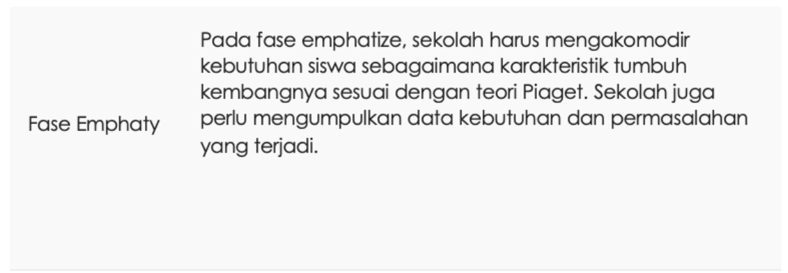 Marilah kita mulai memproses perancangan prosedur kegiatan Outdoor Learning dengan design thinking. Fase pertama dalam design thinking adalah empathy. Pada fase ini pengumpulan data dan pemetaan data dilakukan. Pemetaan data ini berguna untuk melihat lebih jelas dan detail tentang permasalahan yang terjadi dalam kegiatan Outdoor Learning yang sudah dilakukan. Hasil dari pemetaan masalah akan menggiring kita untuk menyimpulkan masalah dan selanjutnya merumuskannya.
