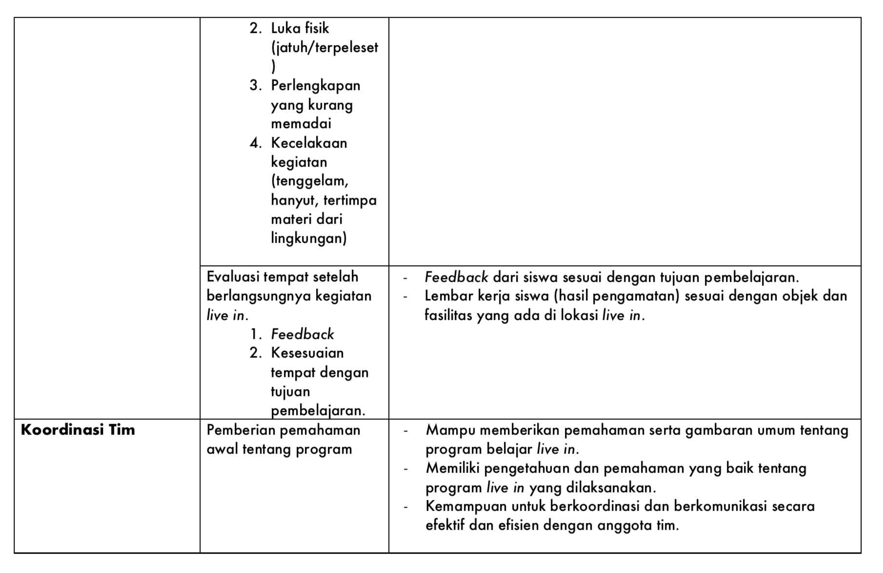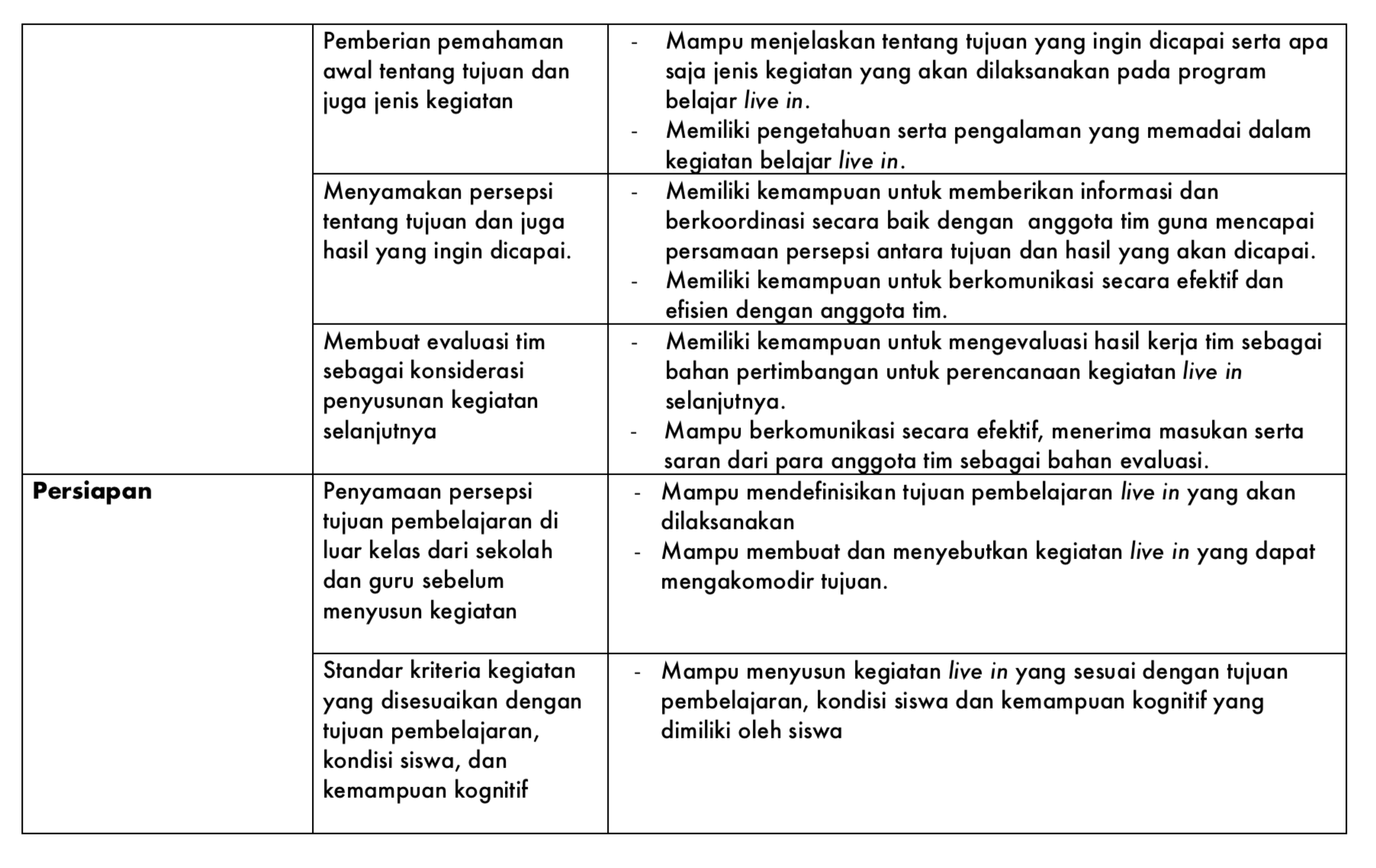 Dengan panduan yang tertulis dalam tabel 2, kegiatan residential experience akan terarah dan tepat sasaran. Hal lain yang perlu dipersiapkan adalah mental dan bekal practical life anak-anak agar mereka dapat berinteraksi dengan orang – orang baru dan juga suasana baru. ***