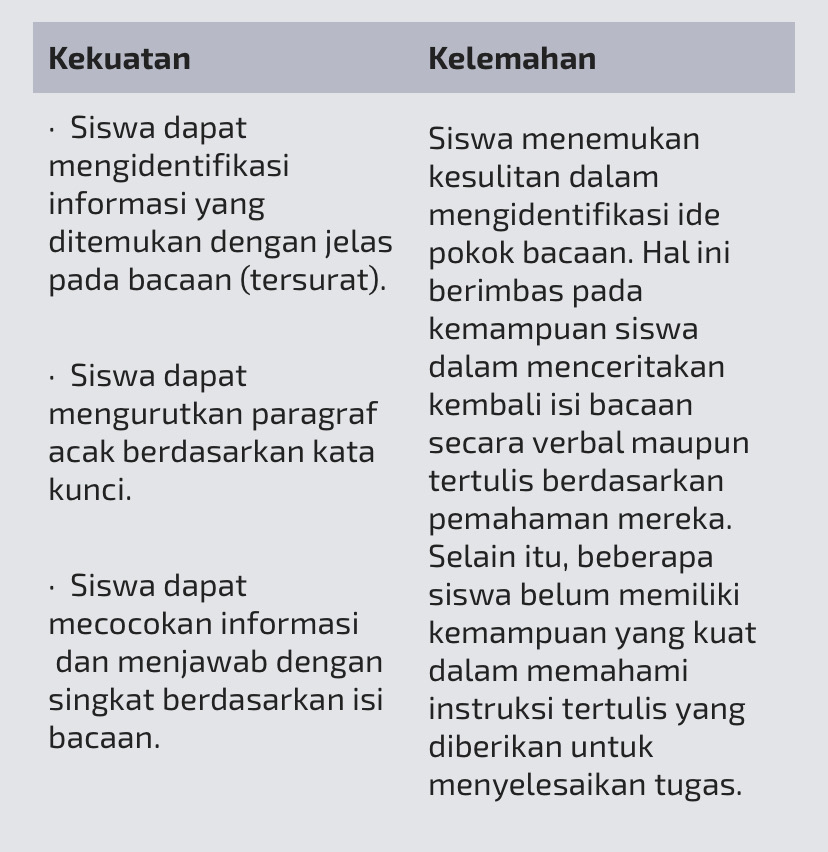 - Siswa dapat mengidentifikasi informasi tersirat dan tersurat yang terdapat pada bacaan.
