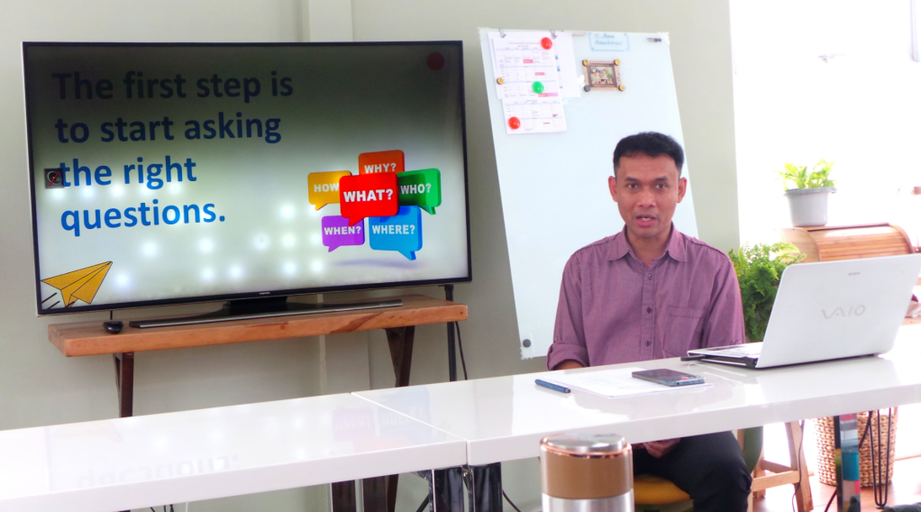 Friendly Cold Calling tentang Driving Question (DQ) dan Design Thinking memasuki hari kedua (29/11). Antusiasme dan partisipasi aktif yang ditunjukkan oleh para guru sangat tinggi. Kelas yang berlangsung selama 1,5 jam ini terasa begitu cepat karena tingkat keterlibatan yang tinggi dari para peserta.